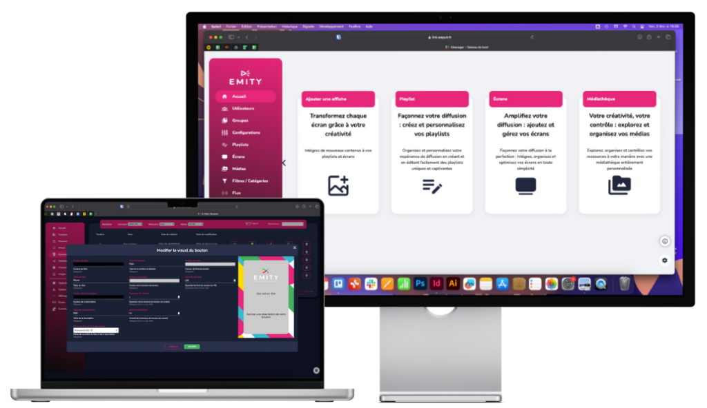 EMITY propose des logiciels d’affichage dynamique complets, intuitifs et ludiques pour diffuser tout votre contenu sur vos écrans et bornes tactiles.