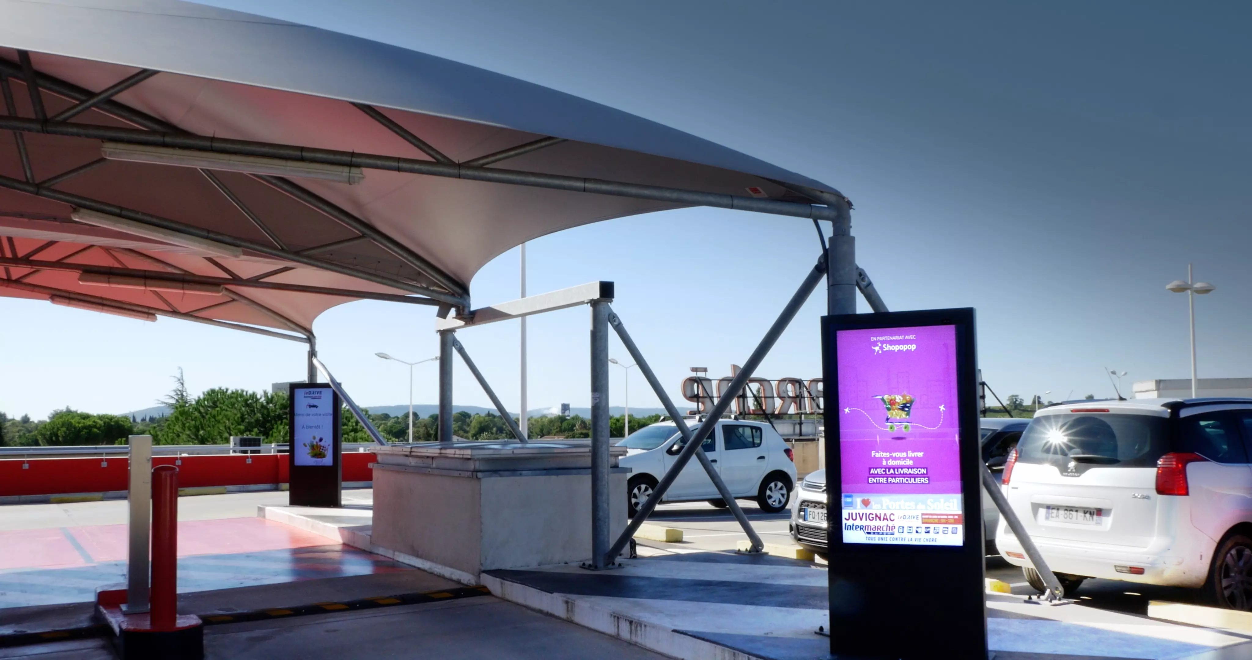 Et sur le parking et les murs extérieurs de la grande surface, des écrans géants !