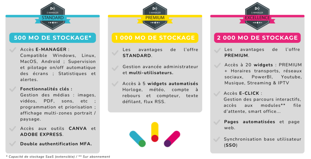 Découvrez nos 3 formules d’abonnements EMITY afin d’adapter au maximum nos offres à votre communication digitale !